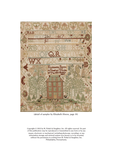 Copyright %u00a9 2012 by M. Finkel & Daughter, Inc. All rights reserved. No part of this publication may be reproduced or transmitted in any form or by any means, electronic or mechanical, including photocopy, recording, or any information storage and retrieval system now known or to be invented,without the permission in writing from M. Finkel & Daughter, Inc. Philadelphia, Pennsylvania.(detail of sampler by Elizabeth Shreve, page 10)