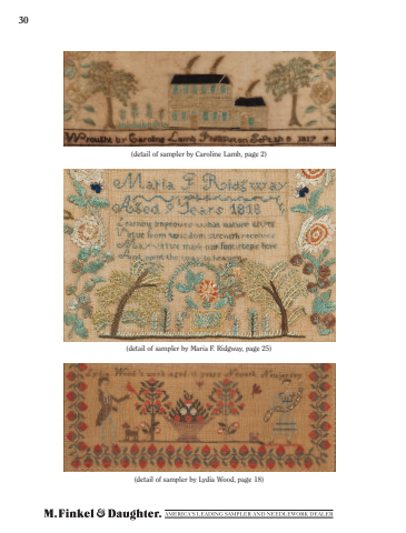 30(detail of sampler by Caroline Lamb, page 2)(detail of sampler by Maria F. Ridgway, page 25)(detail of sampler by Lydia Wood, page 18)