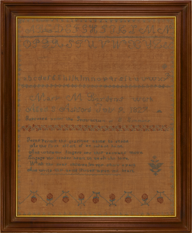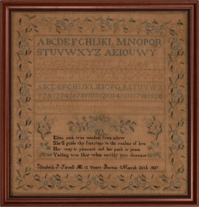 Worked at the Royal Academy for Young Ladies, under the instruction of Doña Mrs. Ana Maria Villazon y Mazamoro, Spain, 1836