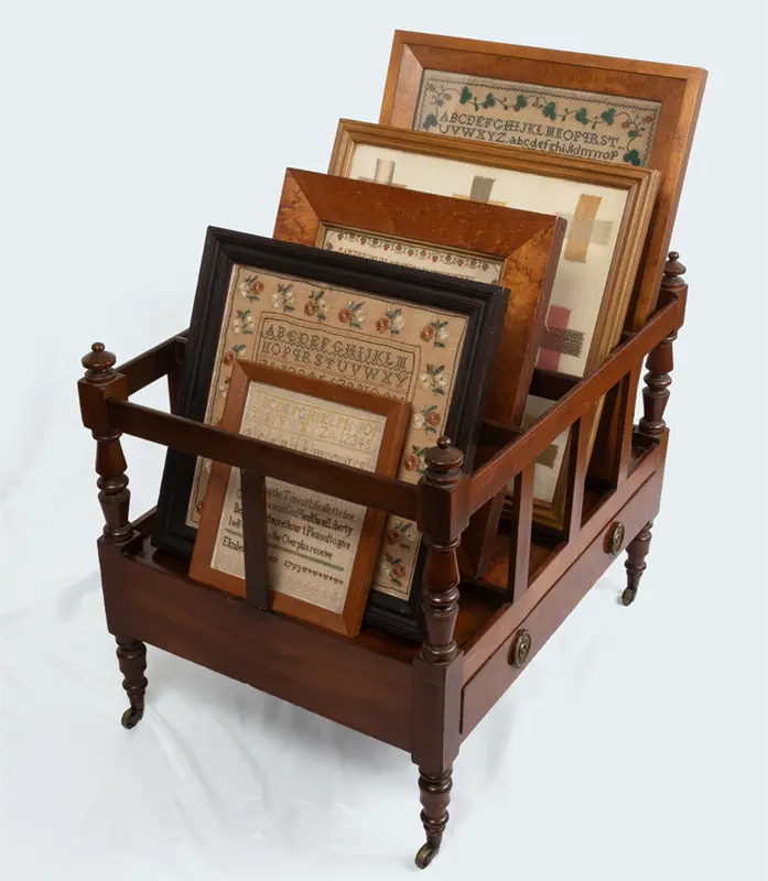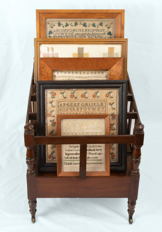 A canterbury is a wonderful English form, originally designed for holding sheet music, folio prints or large books. We find these to be terrific for displaying samplers!