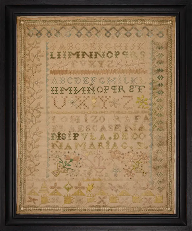 This sampler, along with 11 others, is discussed in a recent essay, Samplers from Spain: An Introduction by Dr. Lynne Anderson, Founder and Director of the Sampler Consortium and Director of the Sampler Archive Project, which can be read here.