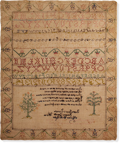 The sampler descended to their daughter Mariah Elizabeth Blackwell (1834-1916) and then to females in each generation until recently.